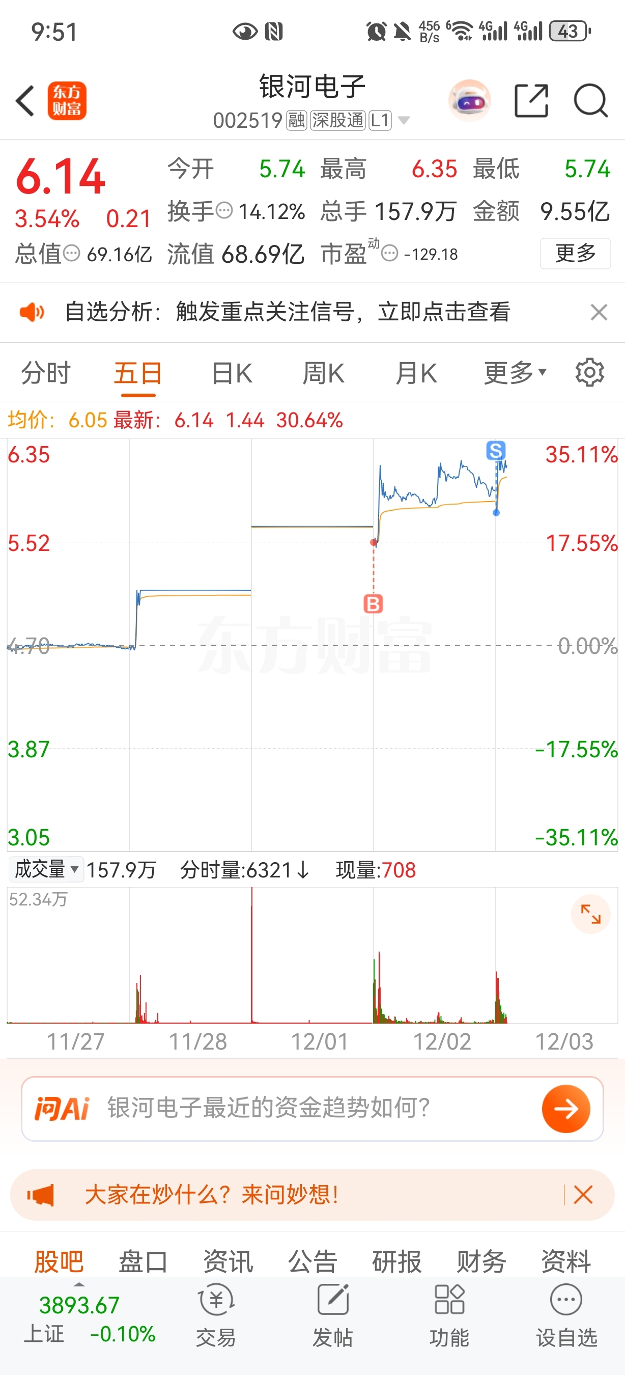 $银河电子(SZ002519)$ 沃糙,剁手剁手