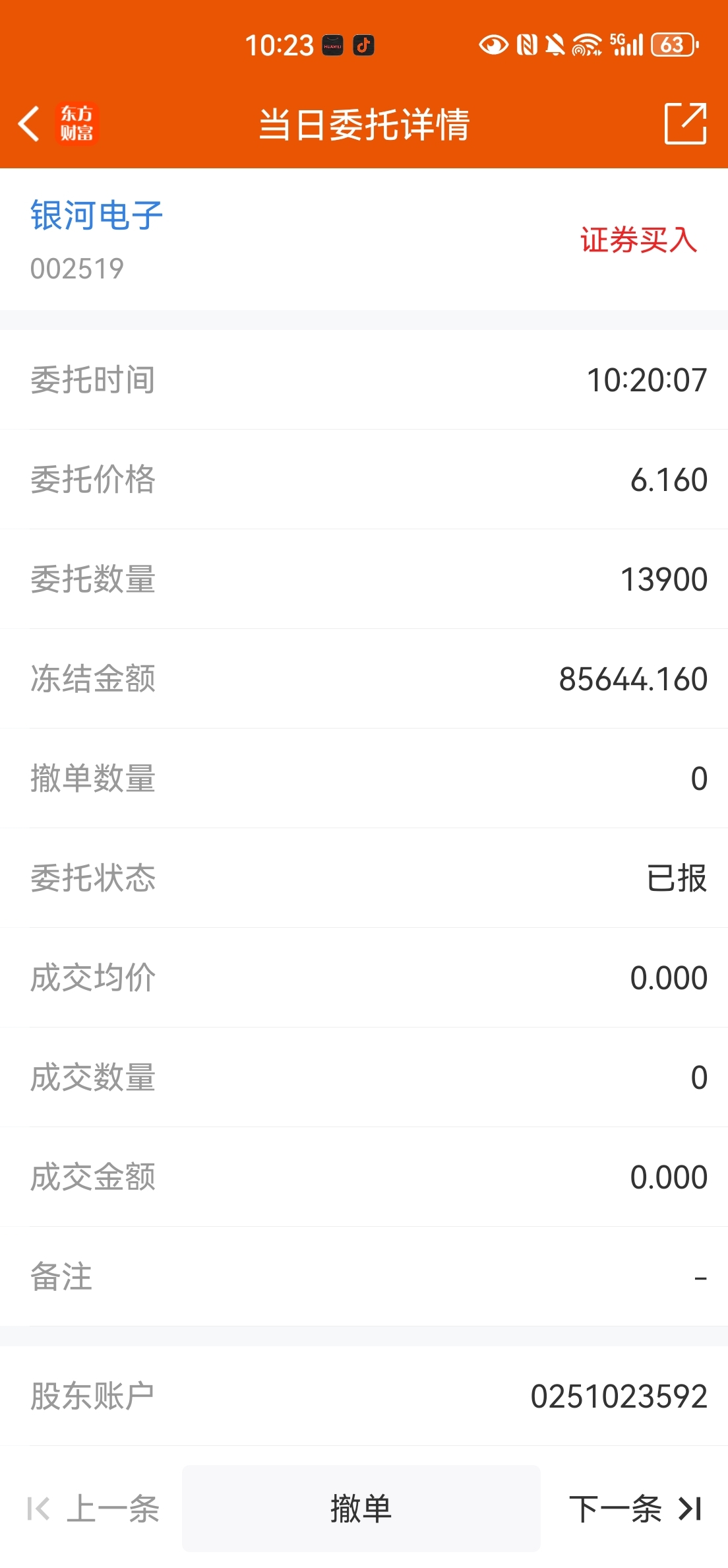$银河电子(SZ002519)$ 就差一秒 套在万年青里边刚出来 里边兄弟发财吧