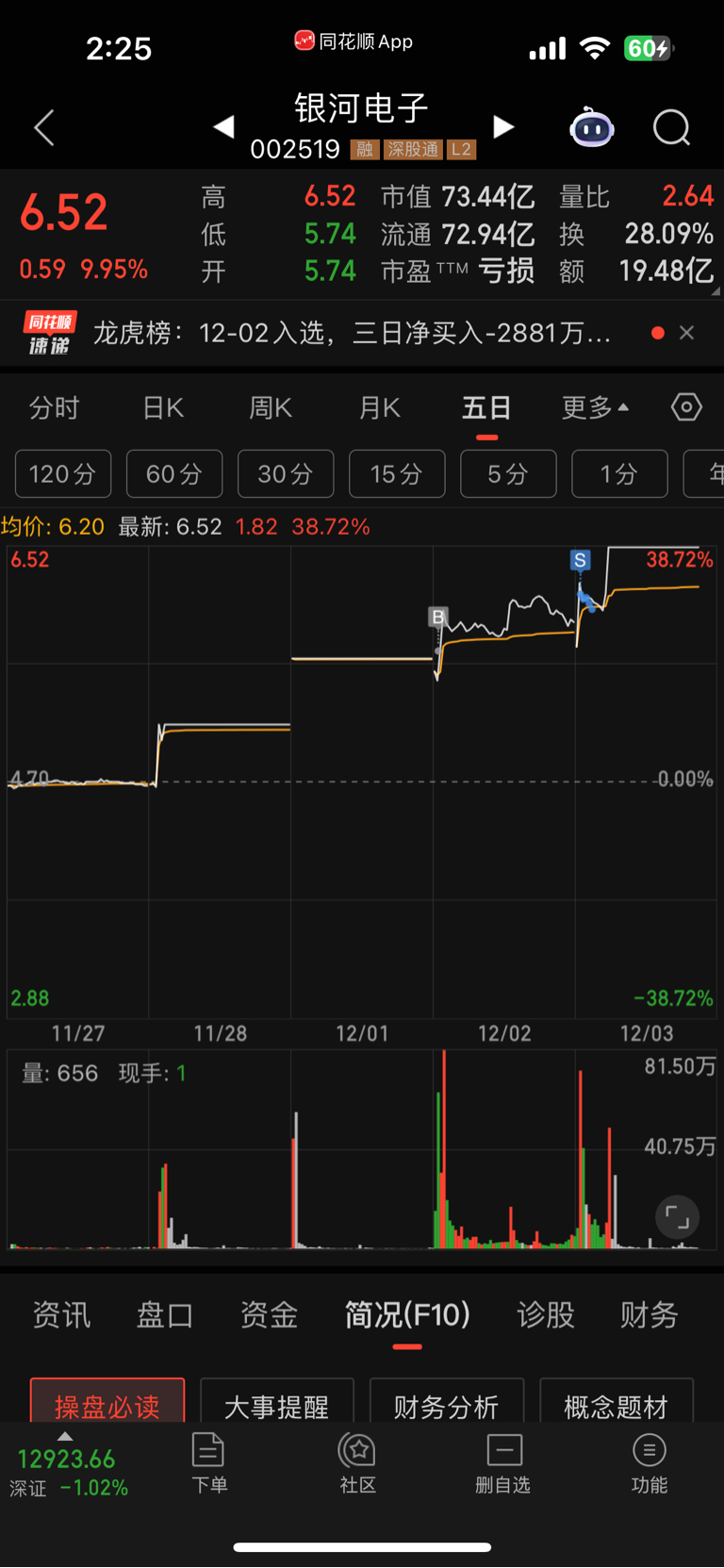 $银河电子(SZ002519)$ 昨日3日线买点,如果昨日涨停,刚好是5日线,可惜昨天下午冲上涨停跌下来了,和今天同庆楼一样@自律如机器