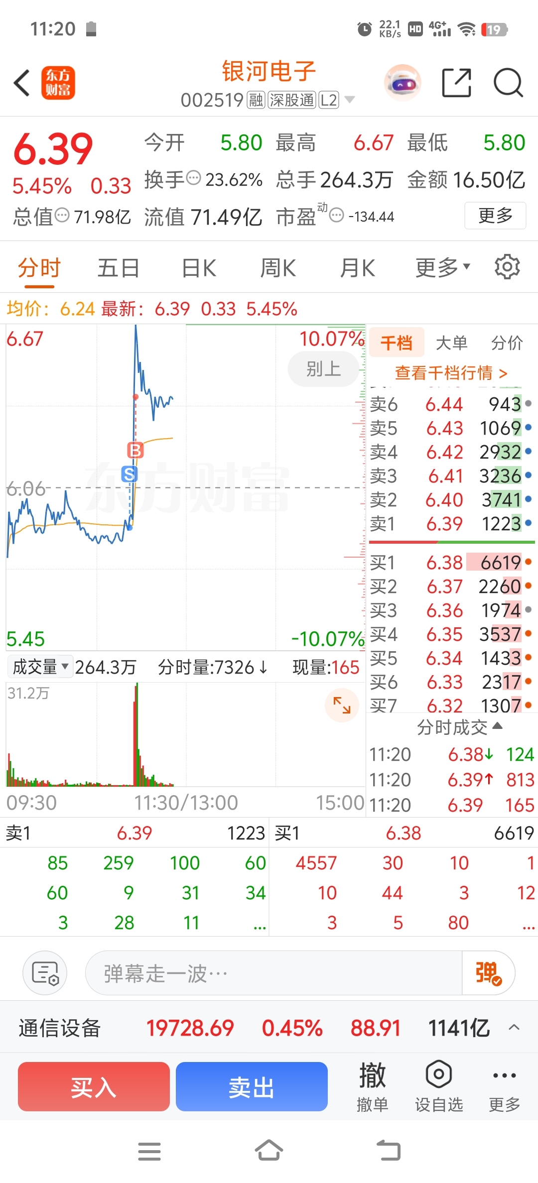 $银河电子(SZ002519)$ 真心累了,5.91卖掉后就开始拉升,看到拉升6.40买进去涨停就炸板,犯天条了。