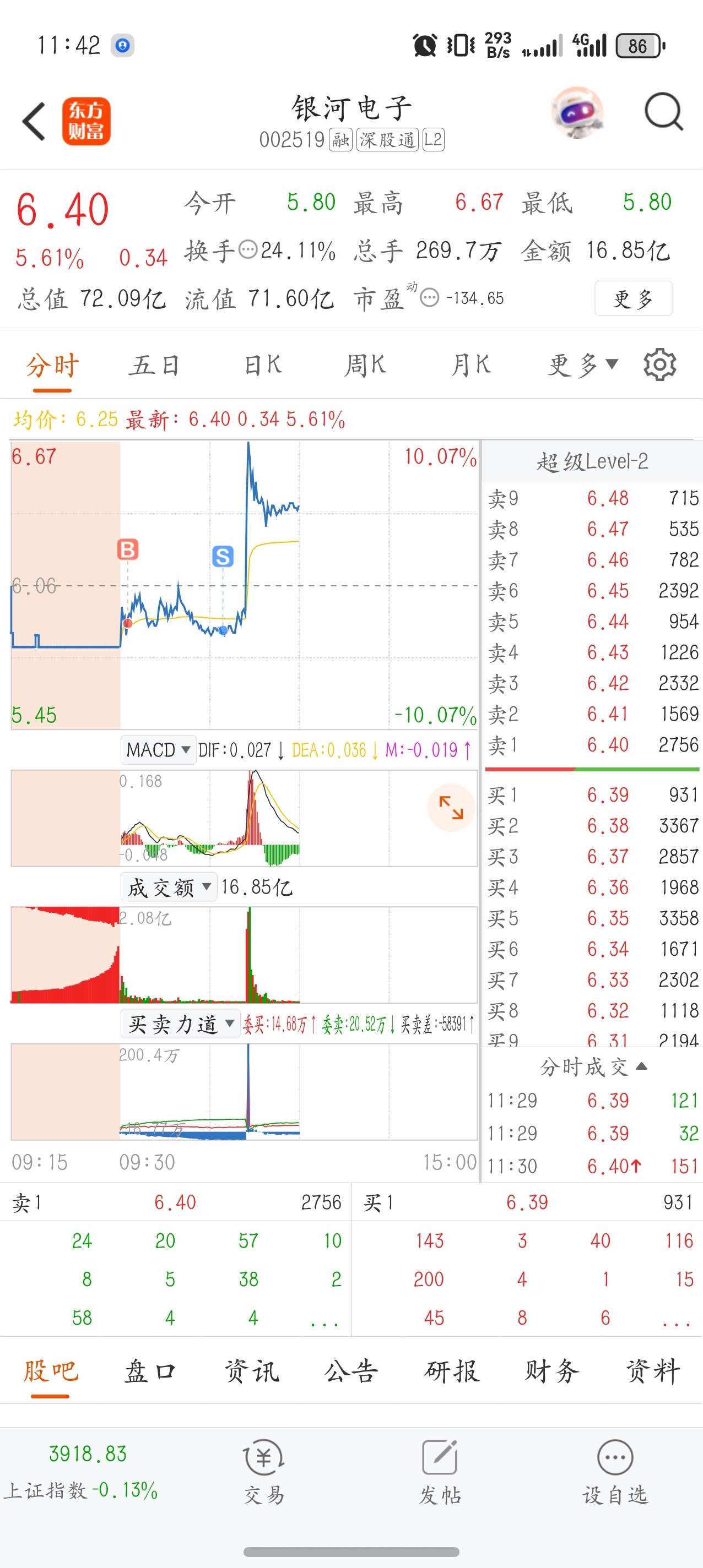 $银河电子(SZ002519)$ 财不入急门,被5.8的托单吓跑了