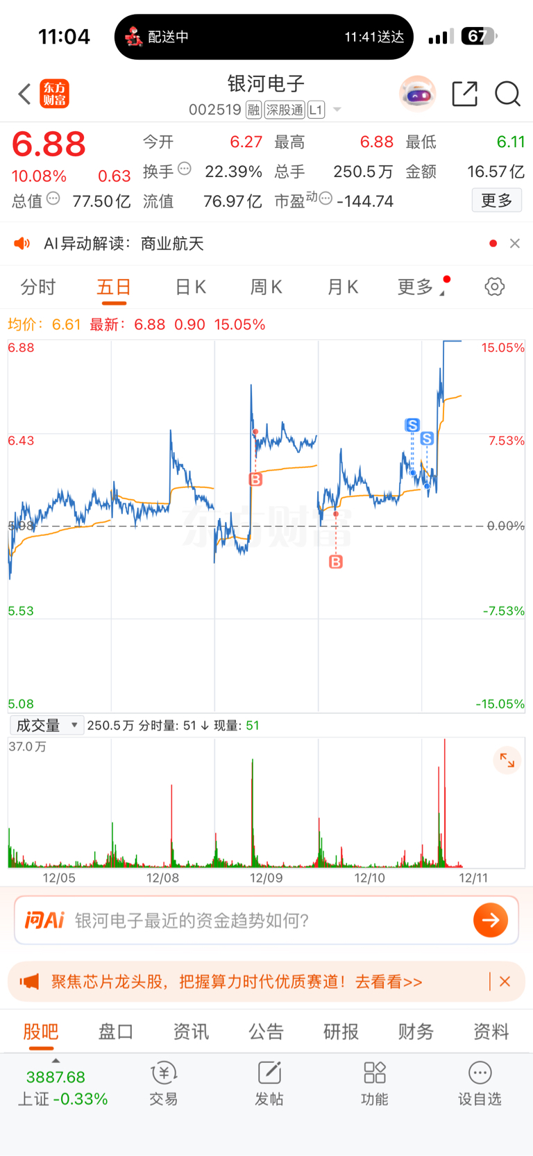 $银河电子(SZ002519)$ 倒在黎明前,一天天磨磨唧唧的,走了就涨停,是我影响主力了