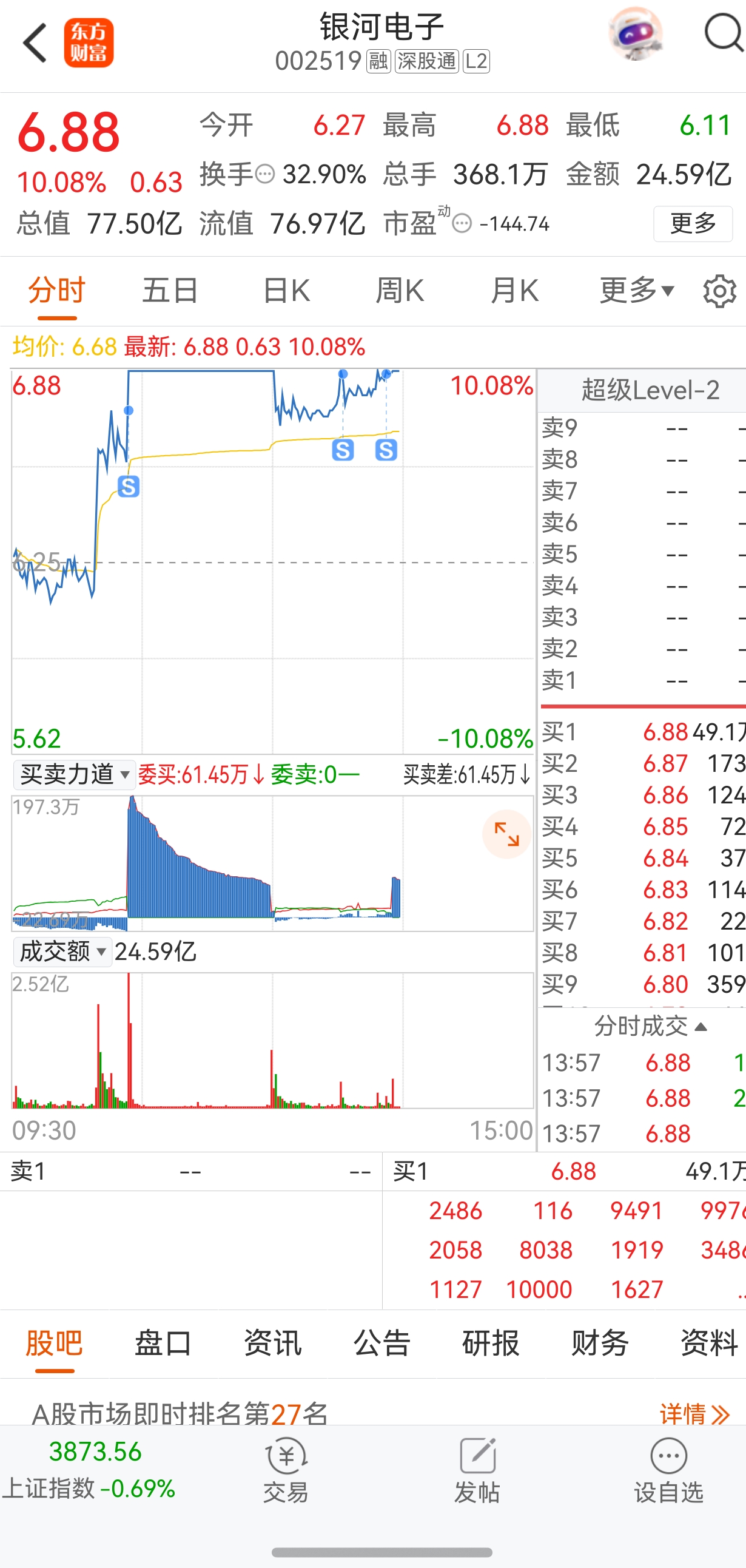 $银河电子(SZ002519)$ 成功给我洗出来了