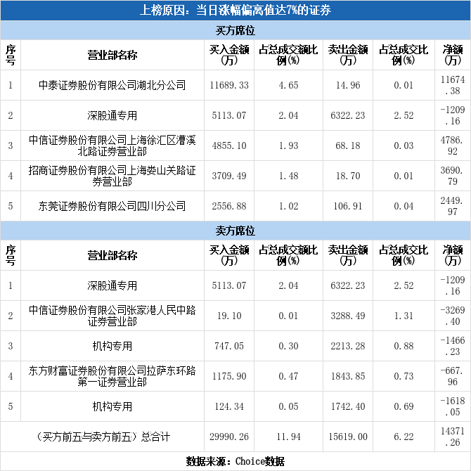多主力现身龙虎榜,银河电子涨停(12-11)