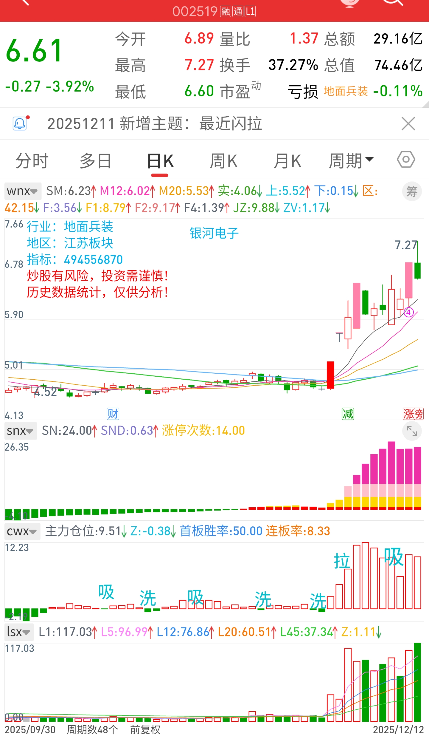 $银河电子(SZ002519)$ #复盘记录# #强势机会# #股市怎么看# #收盘点评# k线指标都很好。k线是穿云和乘风双形态。一根阴线,看似乌云盖顶,实则是大阴线洗盘。