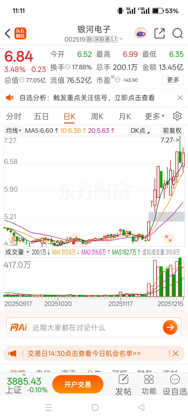 $银河电子(SZ002519)$ 银河大佬,两阳夹阴,多头强烈,继续上车开怼