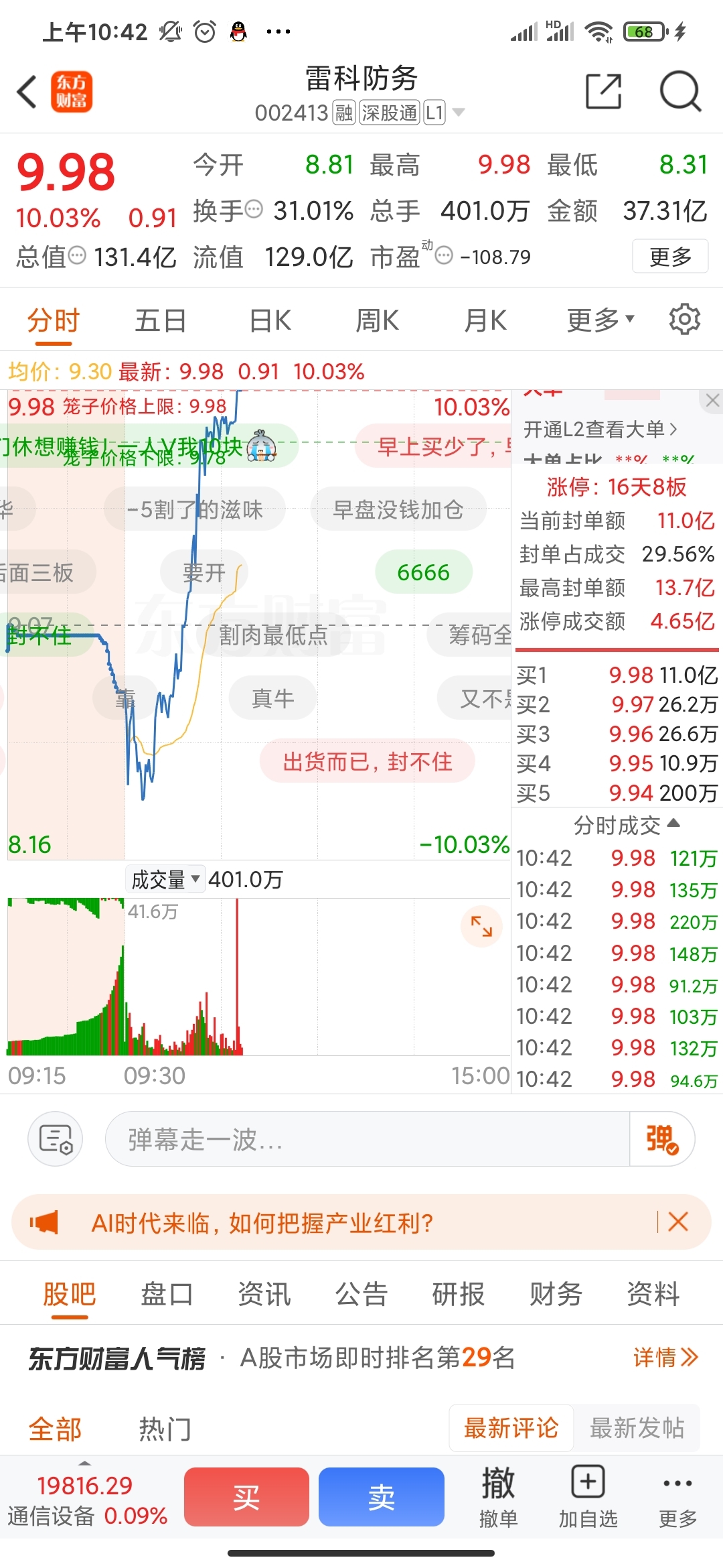温馨提示: 1.根据《证券法》规定,禁止编造、传播虚假信息或者误导性信息,扰乱证券市场;2.用户在本社区发表的所有资料、言论等仅代表个人观点,与本网站立场无关,不对您构成任何投资建议。用户应基于自己的独立判断,自行决定证券投资并承担相应风险。《东方财富社区管理规定》