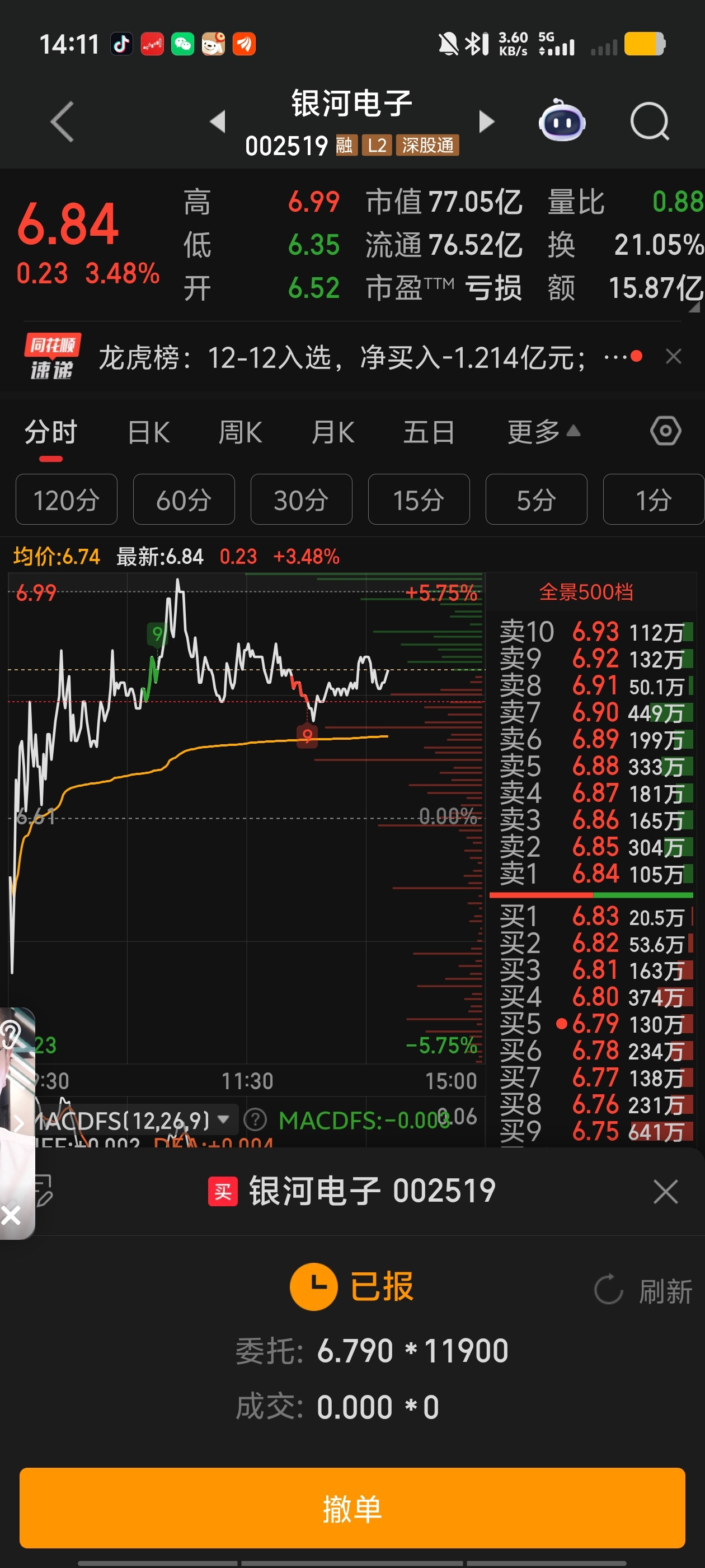 $银河电子(SZ002519)$ 新号买入中分批#炒股日记# #强势机会# #周度策略# #收盘点评# #投资干货# $上海沪工(SH603131)$ $龙溪股份(SH600592)$