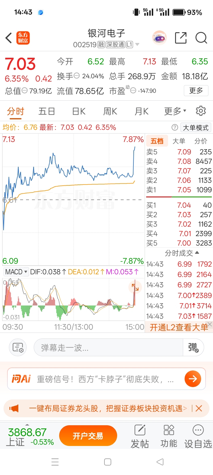 $银河电子(SZ002519)$ 银河上午6.6-.6.8进的朋友,尾盘起飞!两阳夹阴,多头继续看好!等待吃肉