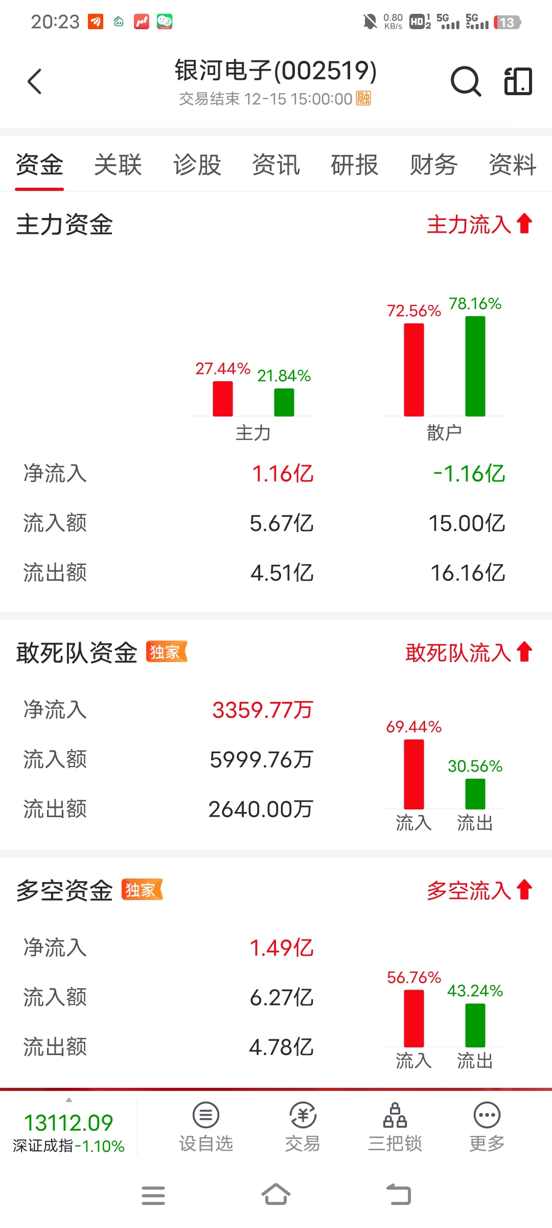 $银河电子(SZ002519)$ 今天散户砸盘太历害了,主力全部吃掉了,多空方敢死队都是拉高掉下来时抢筹。