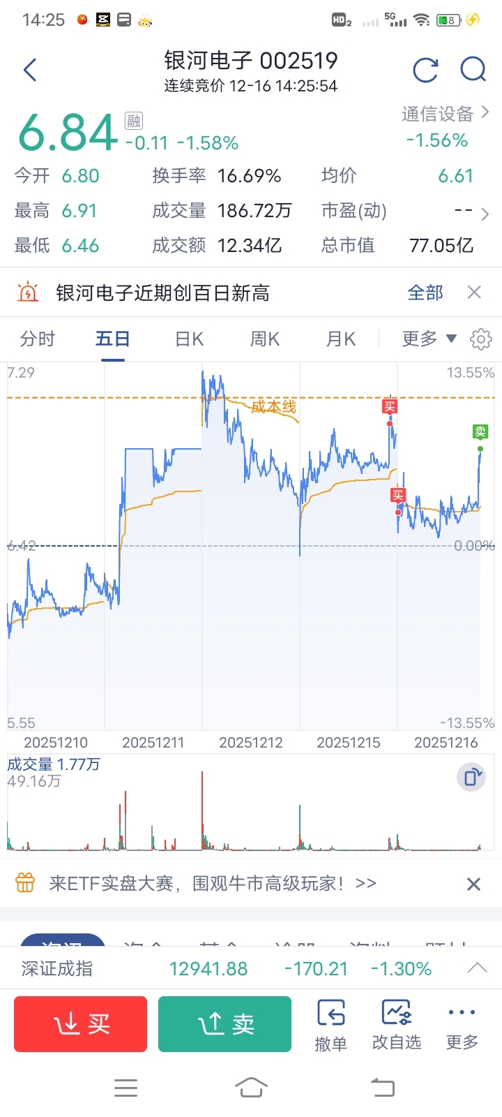 $银河电子(SZ002519)$ 降低成本,昨天成本7.13,目前成本6.8