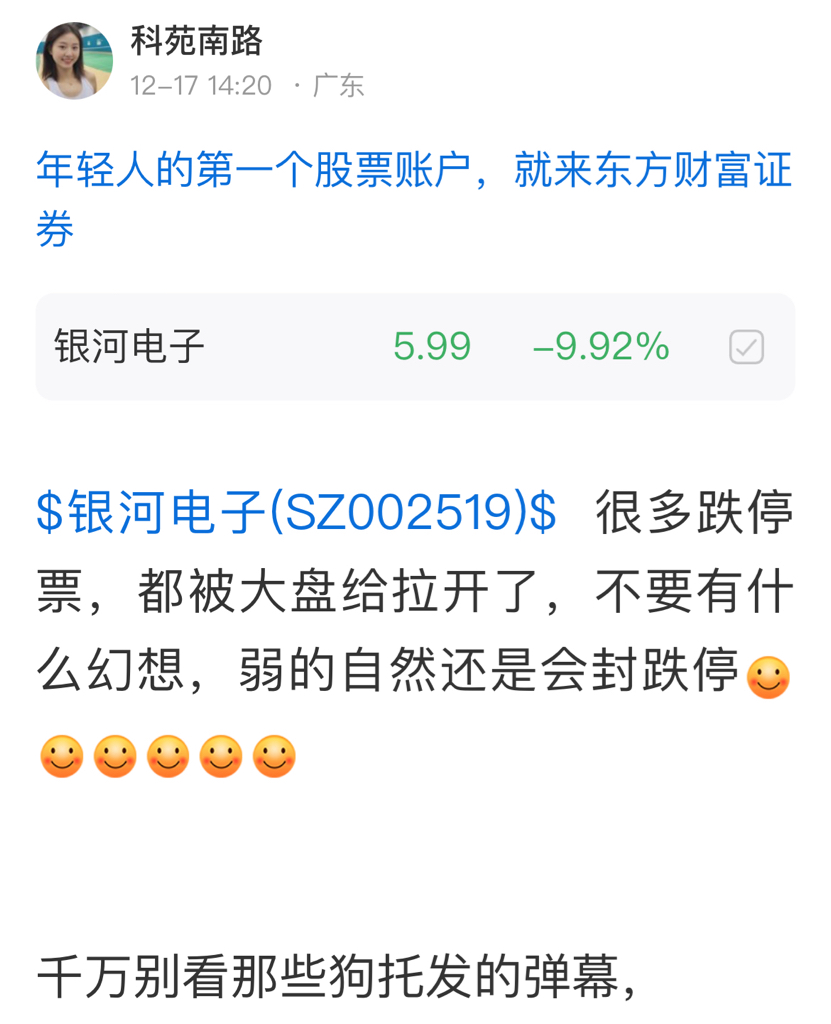 温馨提示: 1.根据《证券法》规定,禁止编造、传播虚假信息或者误导性信息,扰乱证券市场;2.用户在本社区发表的所有资料、言论等仅代表个人观点,与本网站立场无关,不对您构成任何投资建议。用户应基于自己的独立判断,自行决定证券投资并承担相应风险。《东方财富社区管理规定》