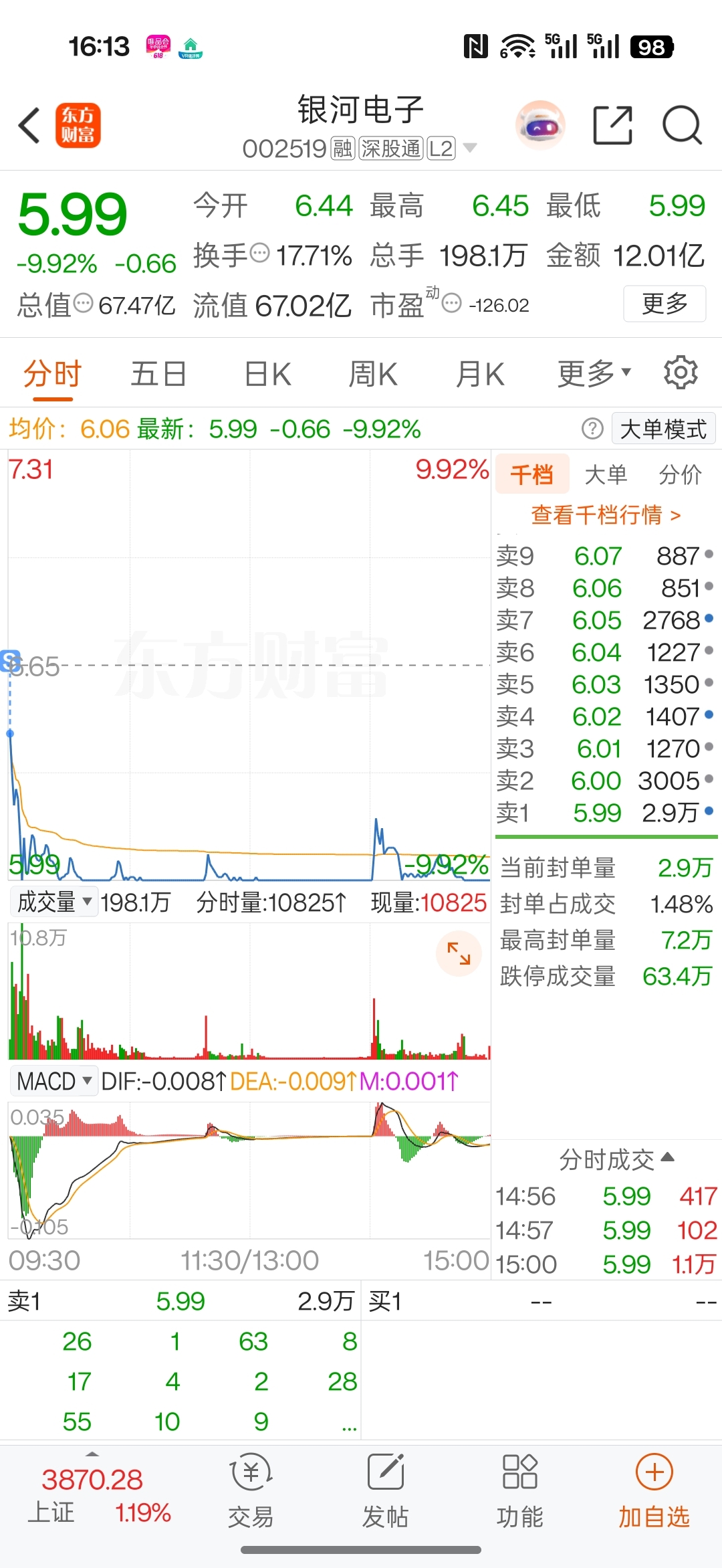 $银河电子(SZ002519)$ 拜拜,你个垃圾,吃了3个点的亏