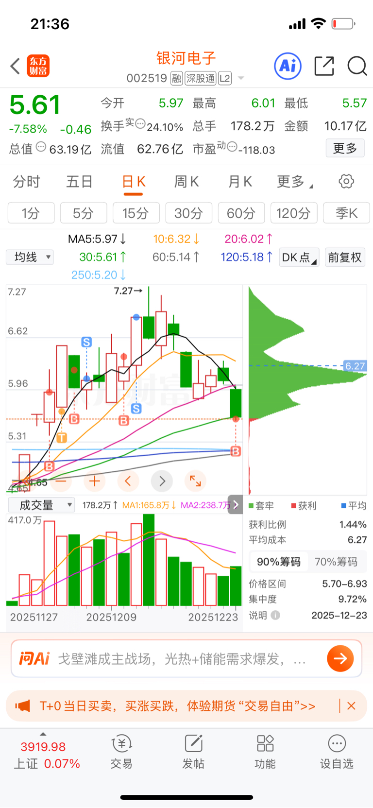 $银河电子(SZ002519)$ 上面全是带血的筹码
