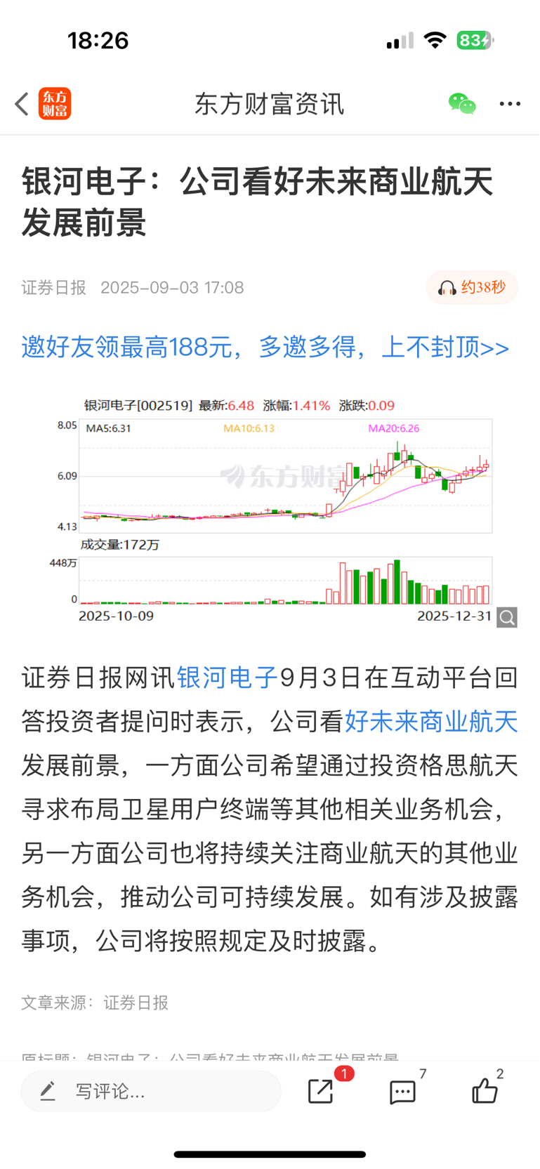 $银河电子(SZ002519)$ 这九月份的,应该是有商业航天的吧