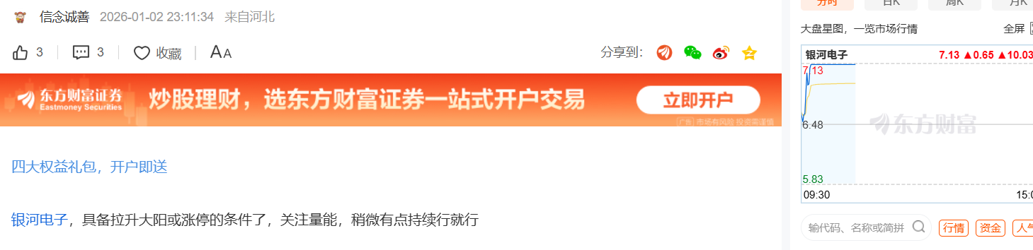 温馨提示: 1.根据《证券法》规定,禁止编造、传播虚假信息或者误导性信息,扰乱证券市场;2.用户在本社区发表的所有资料、言论等仅代表个人观点,与本网站立场无关,不对您构成任何投资建议。用户应基于自己的独立判断,自行决定证券投资并承担相应风险。《东方财富社区管理规定》