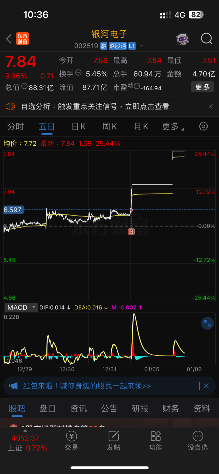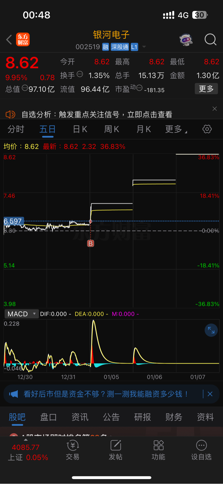 $银河电子(SZ002519)$ 不吃五个板我不走!