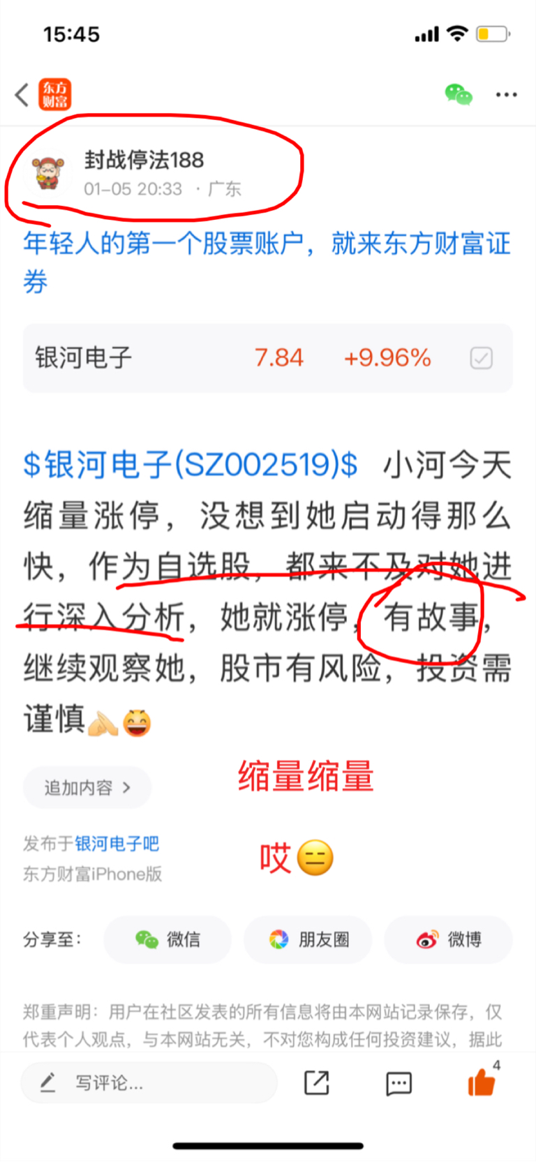 温馨提示: 1.根据《证券法》规定,禁止编造、传播虚假信息或者误导性信息,扰乱证券市场;2.用户在本社区发表的所有资料、言论等仅代表个人观点,与本网站立场无关,不对您构成任何投资建议。用户应基于自己的独立判断,自行决定证券投资并承担相应风险。《东方财富社区管理规定》