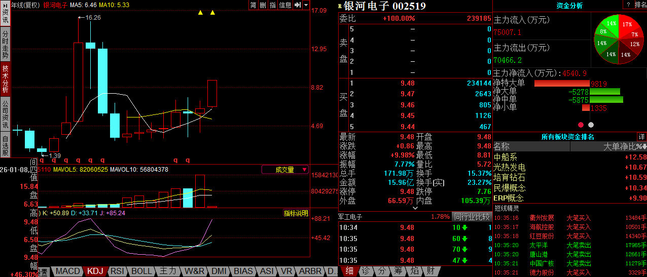 银河电子未来可能有十倍的上涨空间。发展低轨卫星未来要达到1.4万颗,格思航天2026年计划发射一千多颗,银河电子即是格思航天的小股东,又是格思航天卫星的供应商,军工,机器人都有布局,商业航天是个万亿赛道,前途无可限量。今天开盘清了新金路强势进入银河电子。