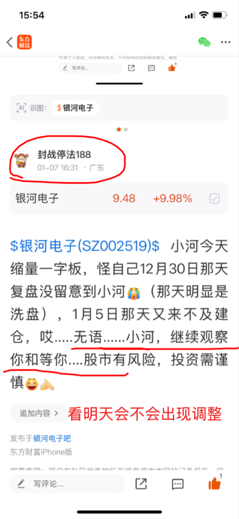 $银河电子(SZ002519)$ 小河今天放量涨停,再次无语,和小河无缘,只能等以后是否有缘了.......股市有风险,投资需谨慎