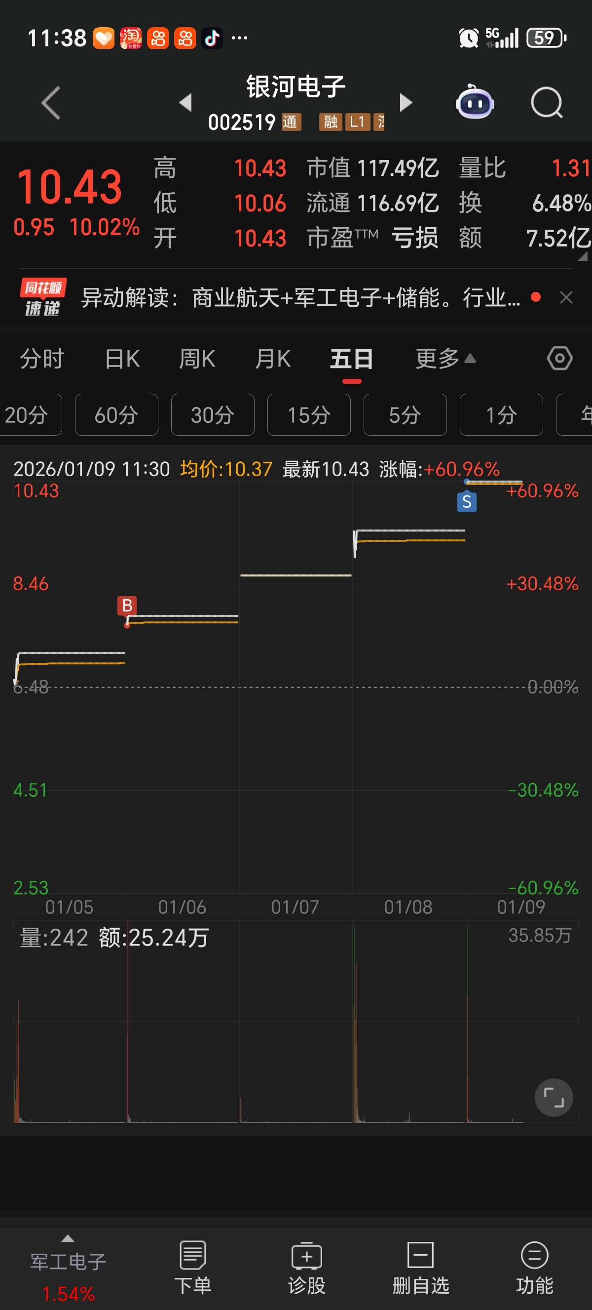 $银河电子(SZ002519)$ 走了,落袋为安,空仓一个周末,好好消费,祝里面的兄弟,继续发财,