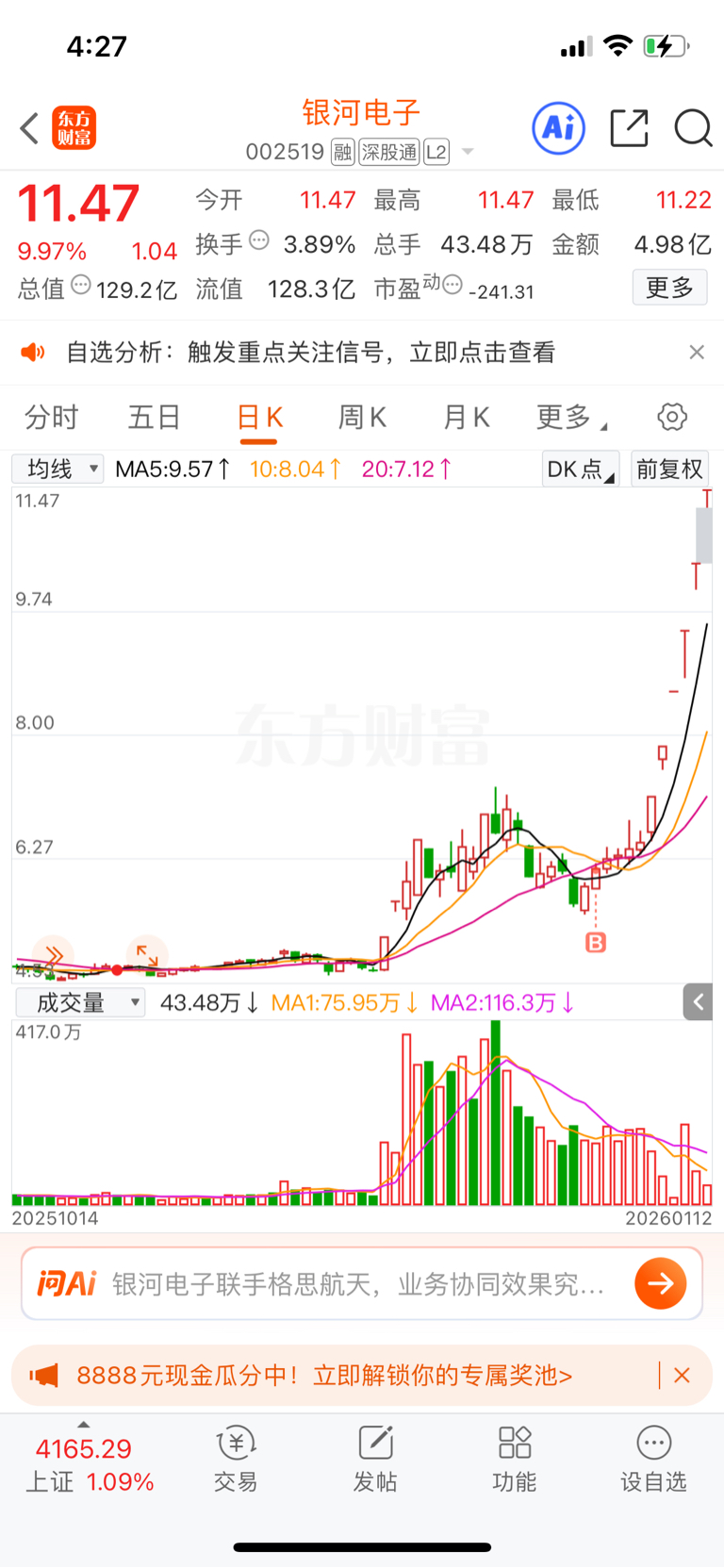 $银河电子(SZ002519)$ 我是比较懒的人,明天就100%收益了,不减仓也不补仓,如果明天开板了不封我就走