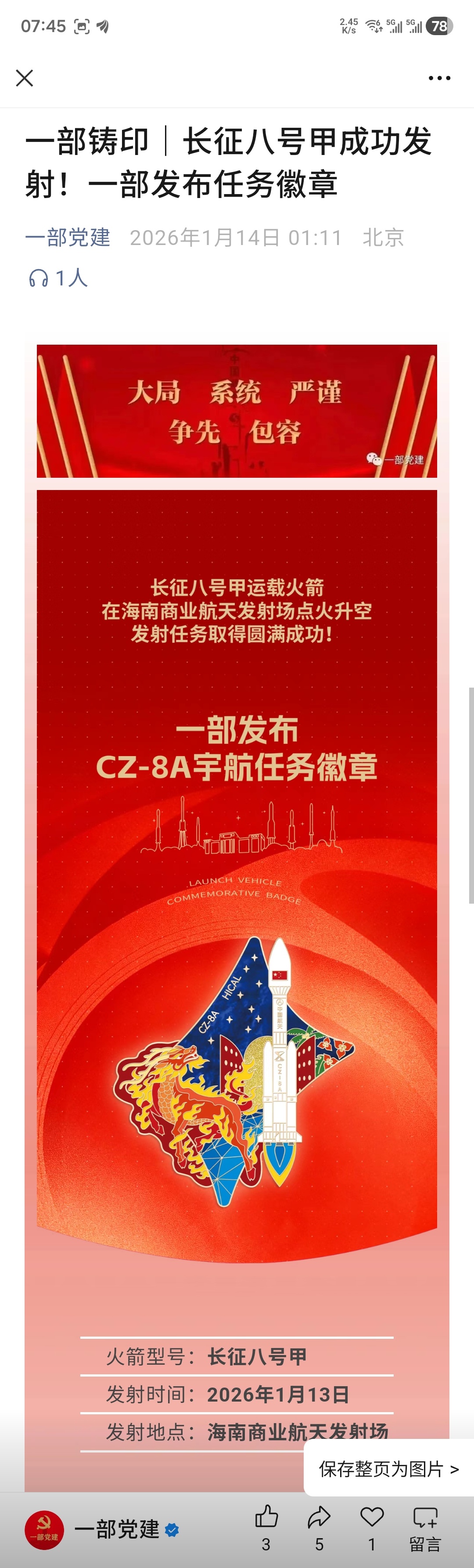 $银河电子(SZ002519)$ $航天科技(SZ000901)$ $航天环宇(SH688523)$ 长征八号甲运载火箭 在海南商业航天发射场点火升空 发射任务取得圆满成功!“中国航天科技一院一部”认证“一部党建”