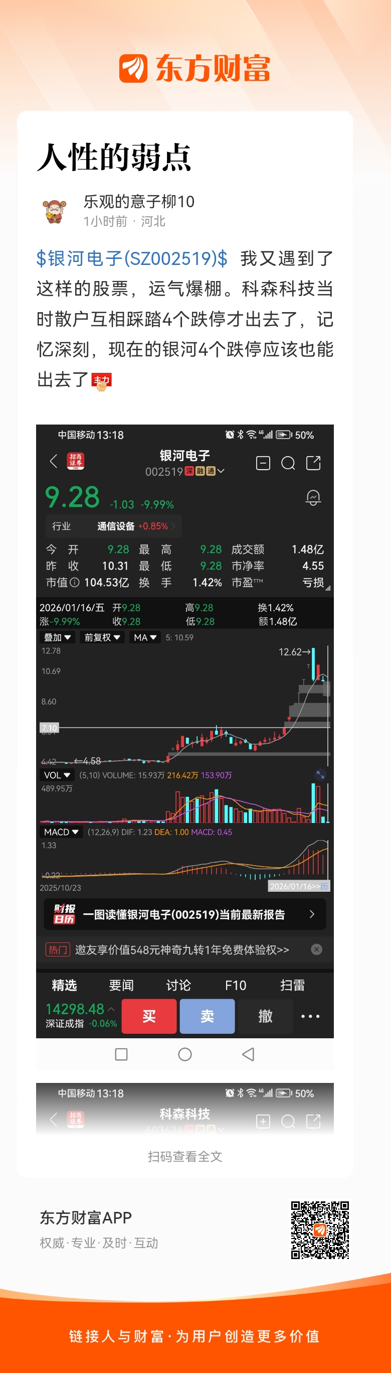 温馨提示: 1.根据《证券法》规定,禁止编造、传播虚假信息或者误导性信息,扰乱证券市场;2.用户在本社区发表的所有资料、言论等仅代表个人观点,与本网站立场无关,不对您构成任何投资建议。用户应基于自己的独立判断,自行决定证券投资并承担相应风险。《东方财富社区管理规定》