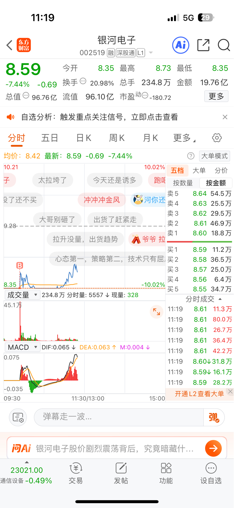 $银河电子(SZ002519)$ 好时机,今天这个量能充分释放,走的走,留的留,概念题材都不错,非常好的标的。庄庄还年轻,还是有希望博起的~