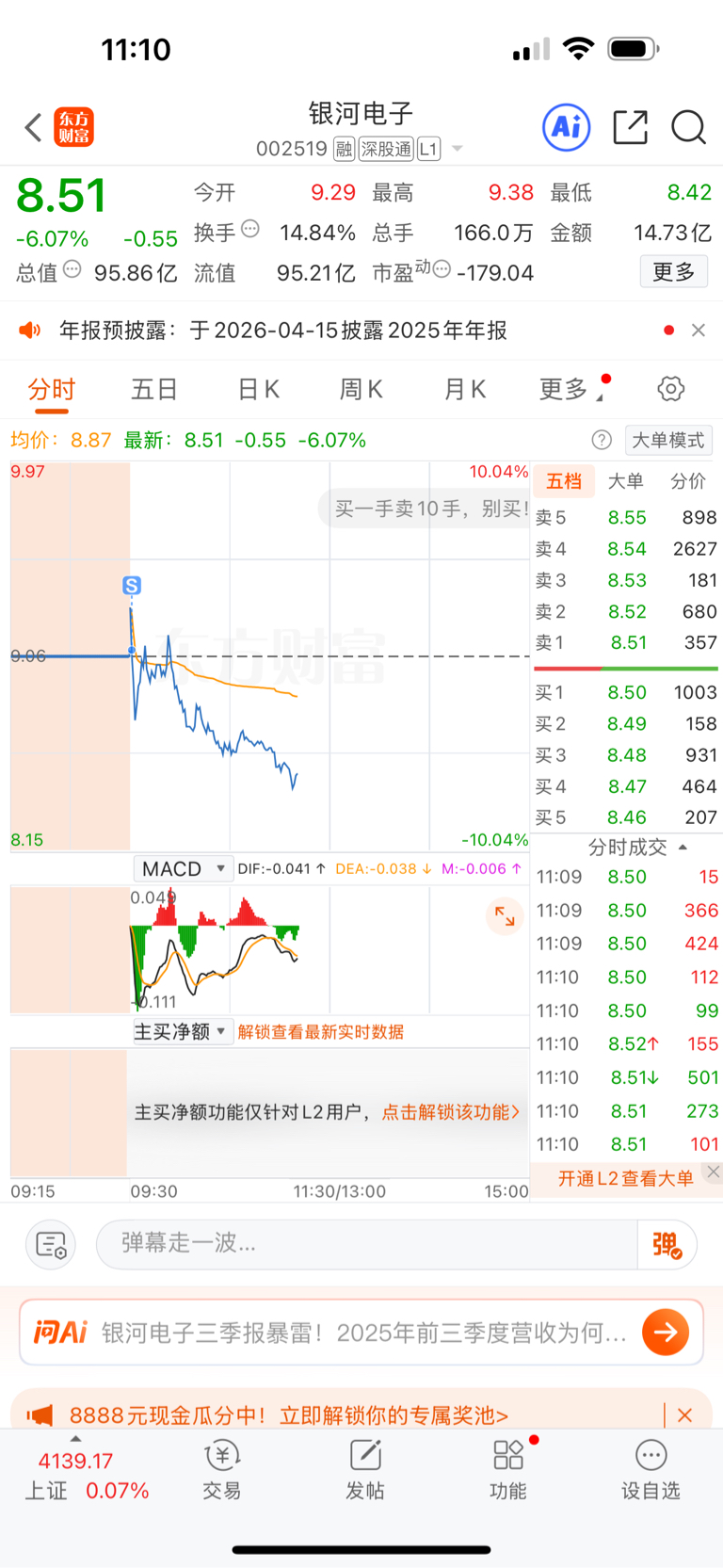 $银河电子(SZ002519)$ 还好跑了,哈哈哈哈哈哈哈