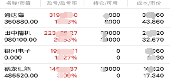 1月26日上午持仓如下:早盘卖:002519银河电子,早盘入手:000593德龙汇演,持:301378通达海 还有上周五下午入场的300461田中精机 也继续持有。 下午再找合适机会看看(声明:个人操作,切勿追高,后果自负)