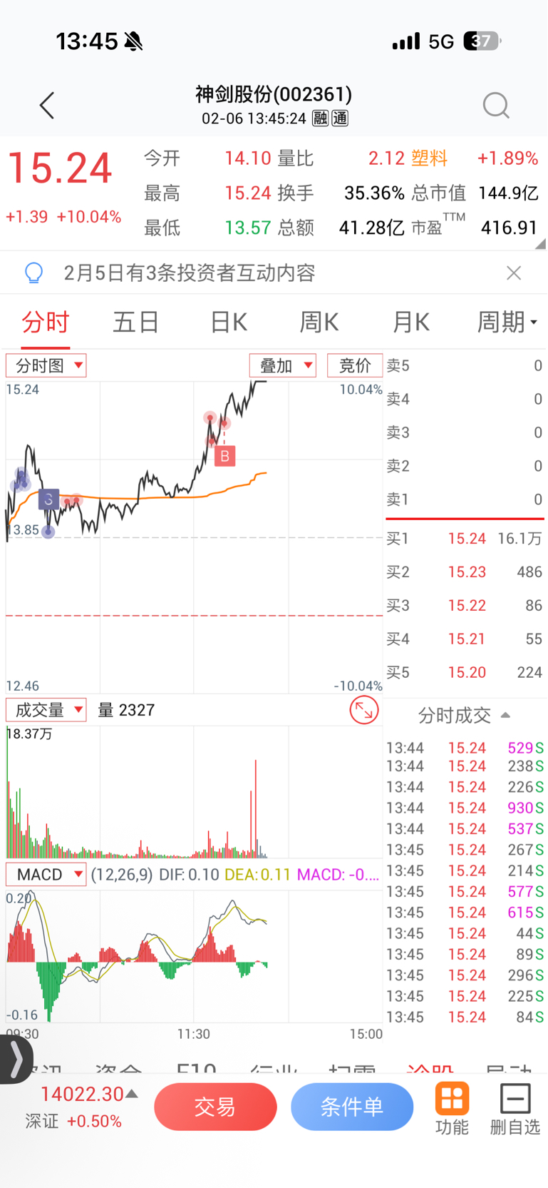 $银河电子(SZ002519)$ $中超控股(SZ002471)$ $雷科防务(SZ002413)$ 通宇通讯,昨天试盘线出现的,横的比较久,属于二波中低位。随着神剑形态拉涨停,这些类似形态和核心技术面的股票都在启动。神剑卖飞了。不如不动。说了这周一股不卖还是没做到。打脸的倒T
