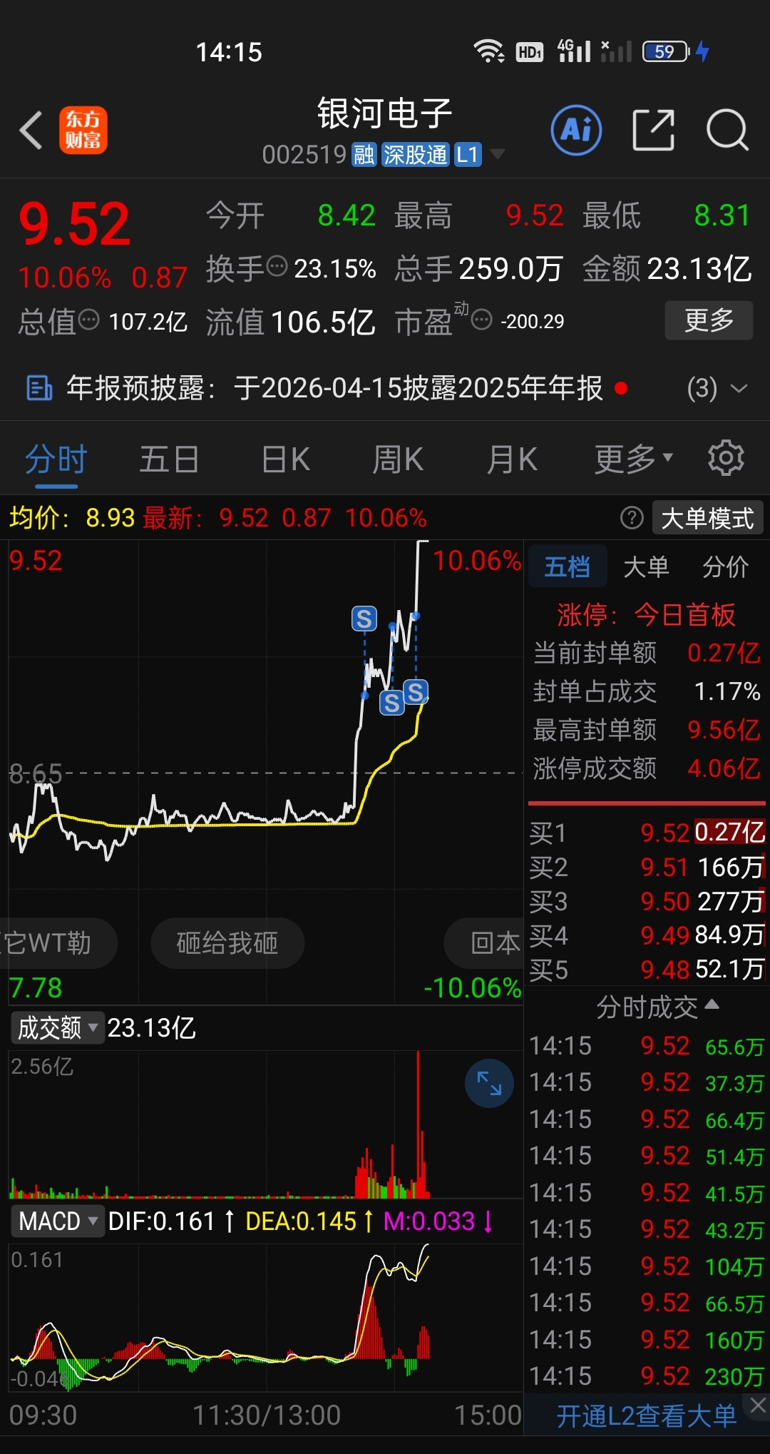$银河电子(SZ002519)$ 卖飞了
