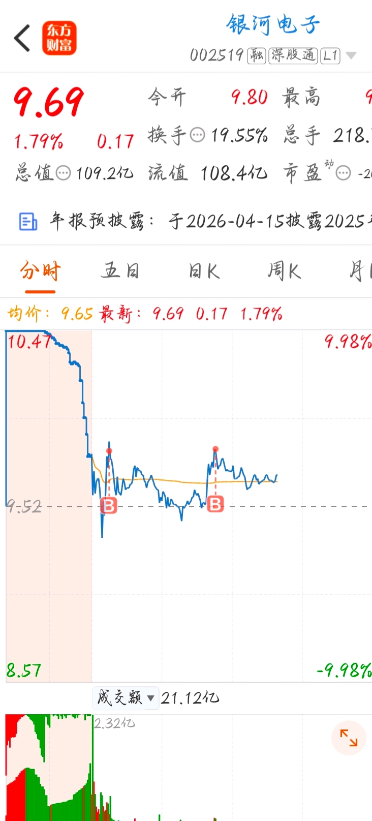 $银河电子(SZ002519)$ 今天应该没人比我会B