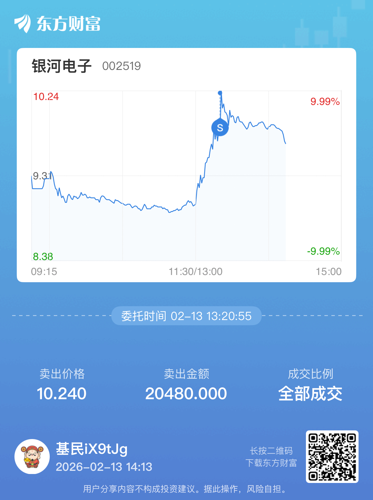 温馨提示: 1.根据《证券法》规定,禁止编造、传播虚假信息或者误导性信息,扰乱证券市场;2.用户在本社区发表的所有资料、言论等仅代表个人观点,与本网站立场无关,不对您构成任何投资建议。用户应基于自己的独立判断,自行决定证券投资并承担相应风险。《东方财富社区管理规定》