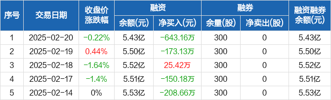 齐峰新材:融资净偿还643.16万元,融资余额5.43亿元(02-20)