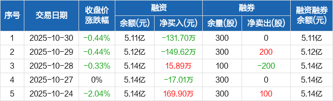 齐峰新材:融资净偿还131.7万元,融资余额5.11亿元(10-30)
