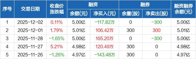 齐峰新材:融资净偿还117.82万元,融资余额5亿元(12-02)