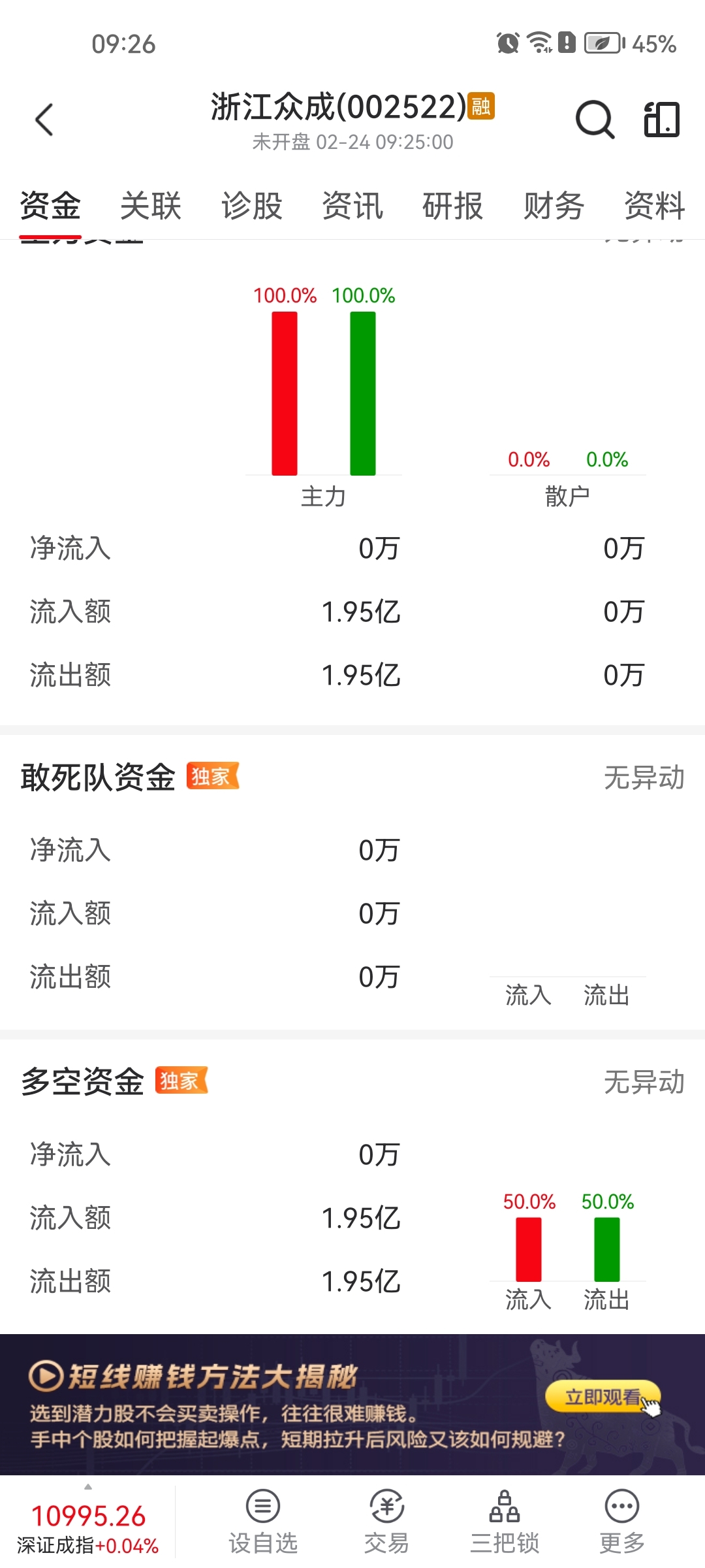 $浙江众成(SZ002522)$ 把我吓出去了,主力左手互换,吃独食