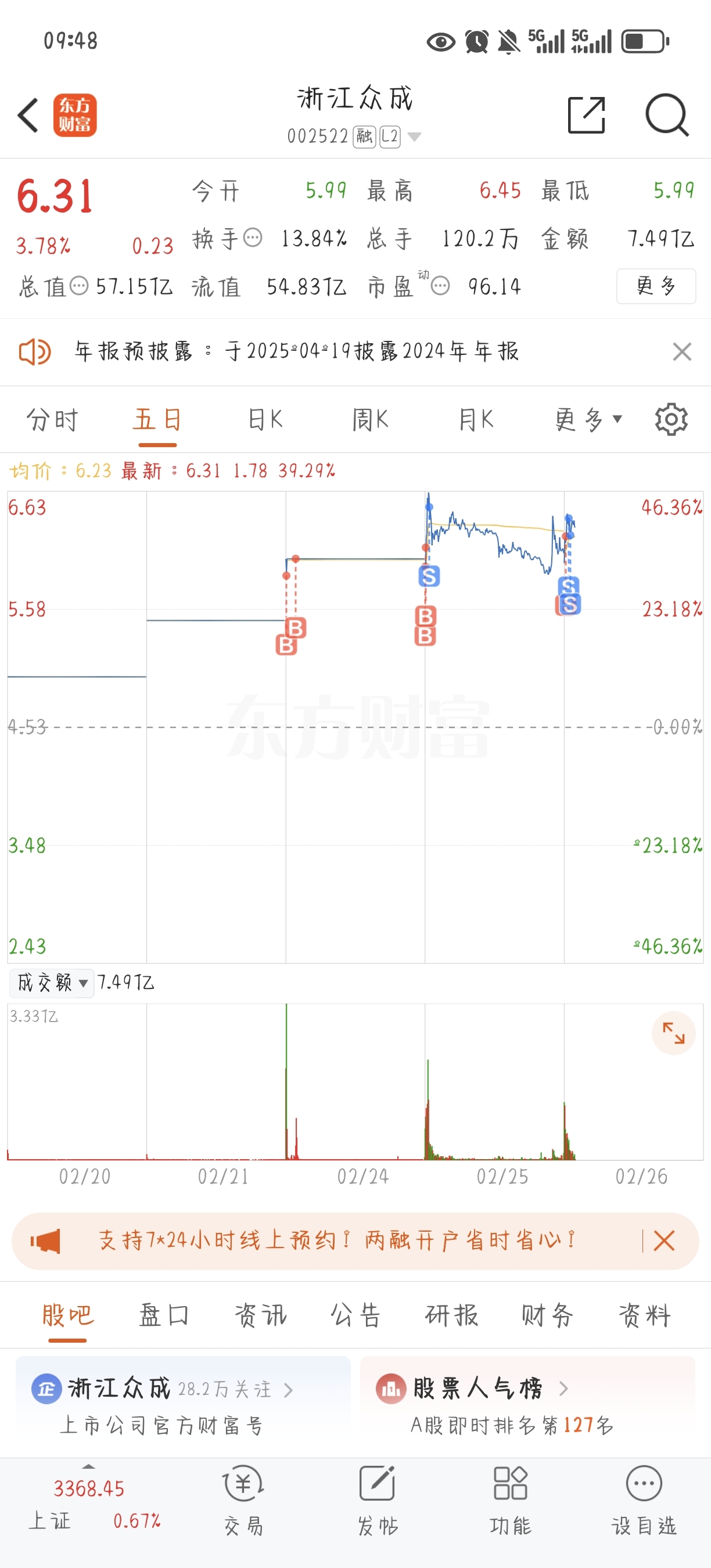 $浙江众成(SZ002522)$ 竞价这么强,拉板这么弱,和昨天一模一样。一字沟庄,浪费行情