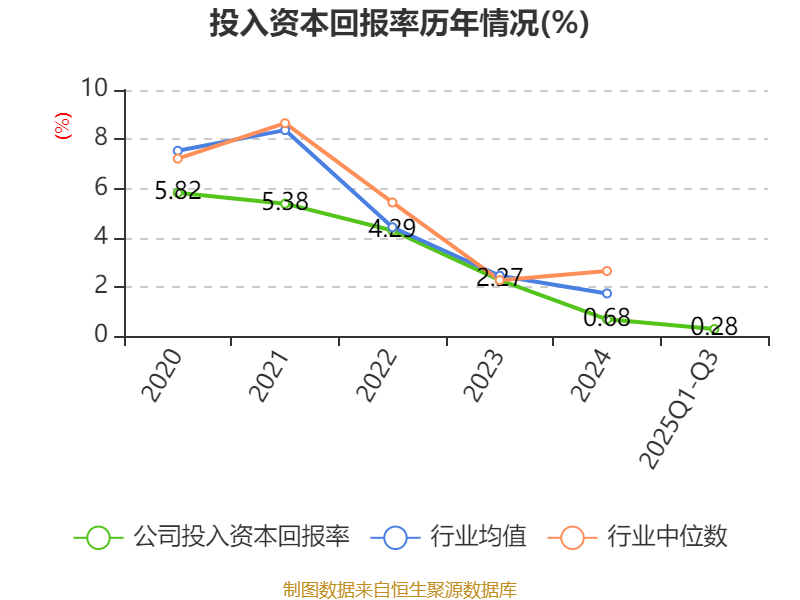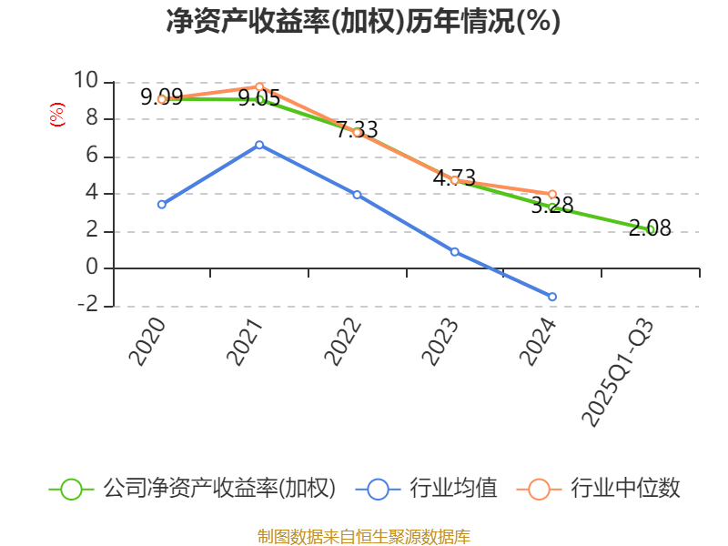 盈利能力方面, 2025年前三季度公司加权平均净资产收益率为2.08%,同比上升0.1个百分点。公司2025年前三季度投入资本回报率为0.28%,较上年同期上升0.56个百分点。
