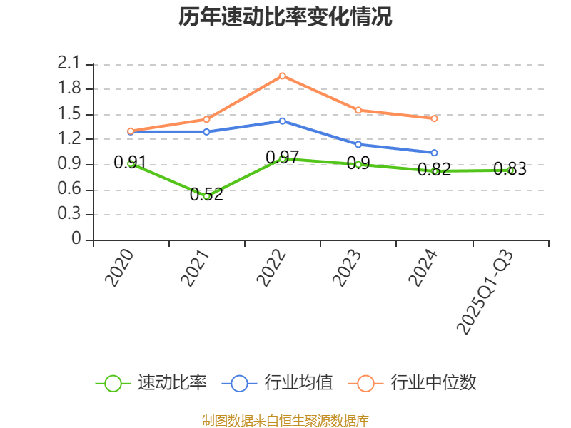2025年前三季度,公司流动比率为1.24,速动比率为0.83。