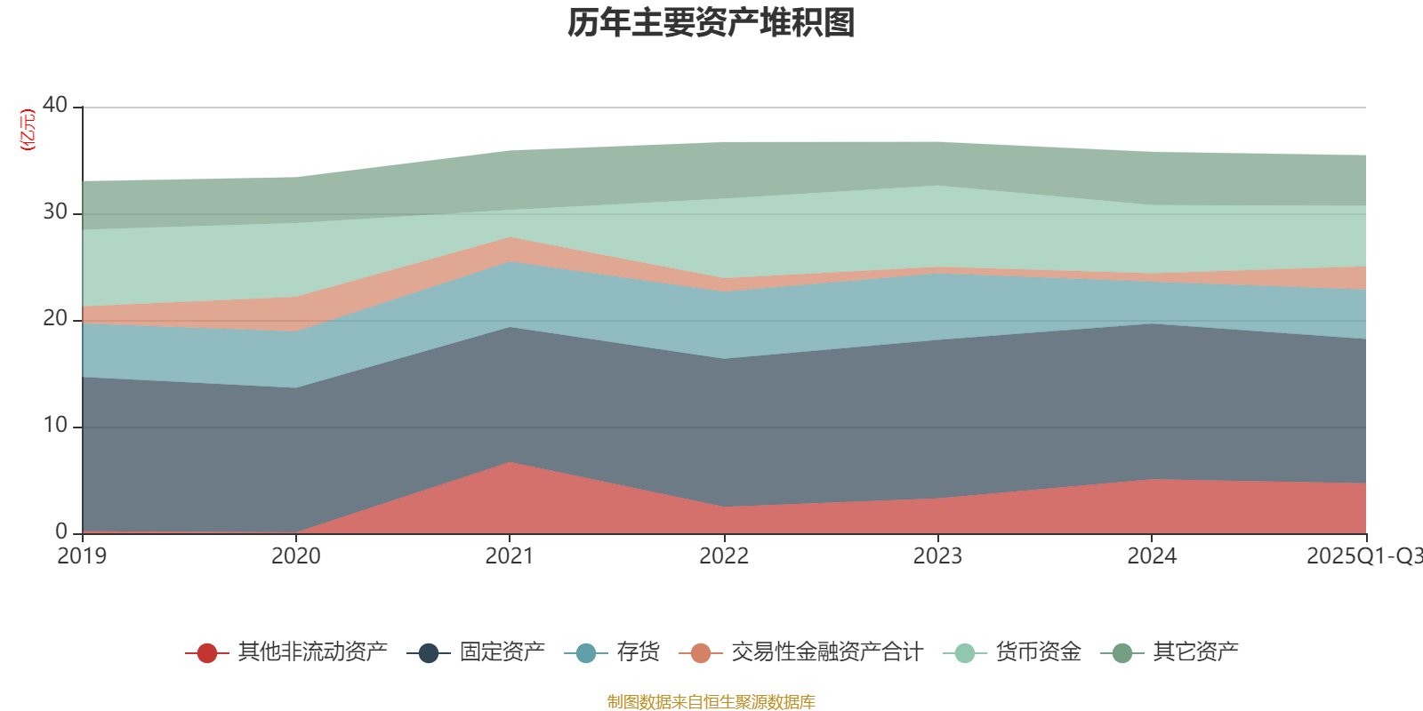 资产重大变化方面,截至2025年三季度末,公司交易性金融资产合计较上年末增加172.82%,占公司总资产比重上升3.92个百分点;固定资产较上年末减少7.23%,占公司总资产比重下降2.61个百分点;存货较上年末增加17.56%,占公司总资产比重上升2.05个百分点;货币资金较上年末减少11.11%,占公司总资产比重下降1.84个百分点。