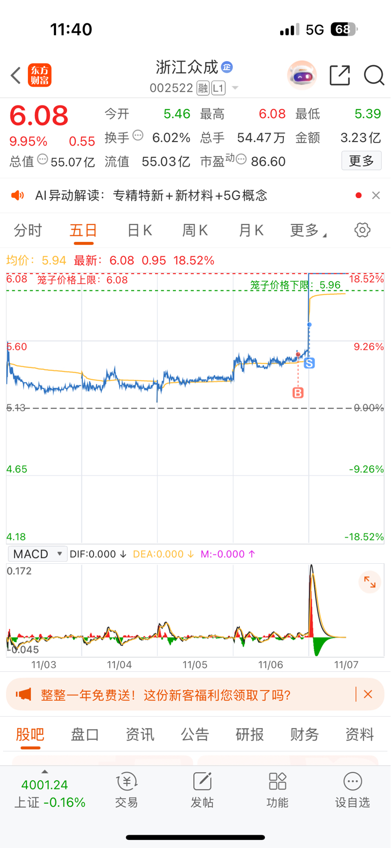 $浙江众成(SZ002522)$ 做梦都想不到一个低开的票这么强势涨停,压错宝了,加仓了佛塑科技