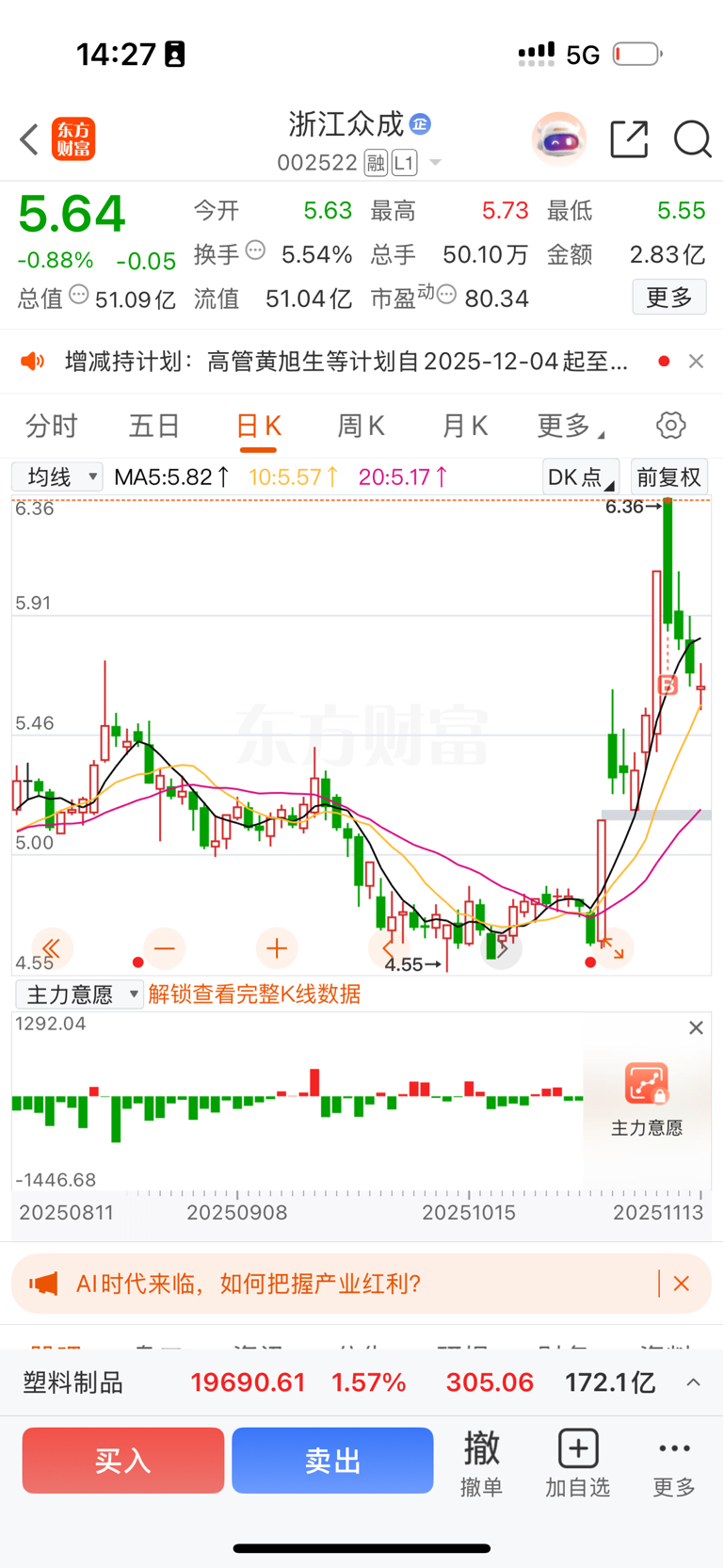 $浙江众成(SZ002522)$ 啥时候回本
