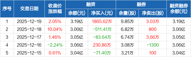 浙江众成:融资净买入1865.62万元,融资余额3.19亿元(12-19)