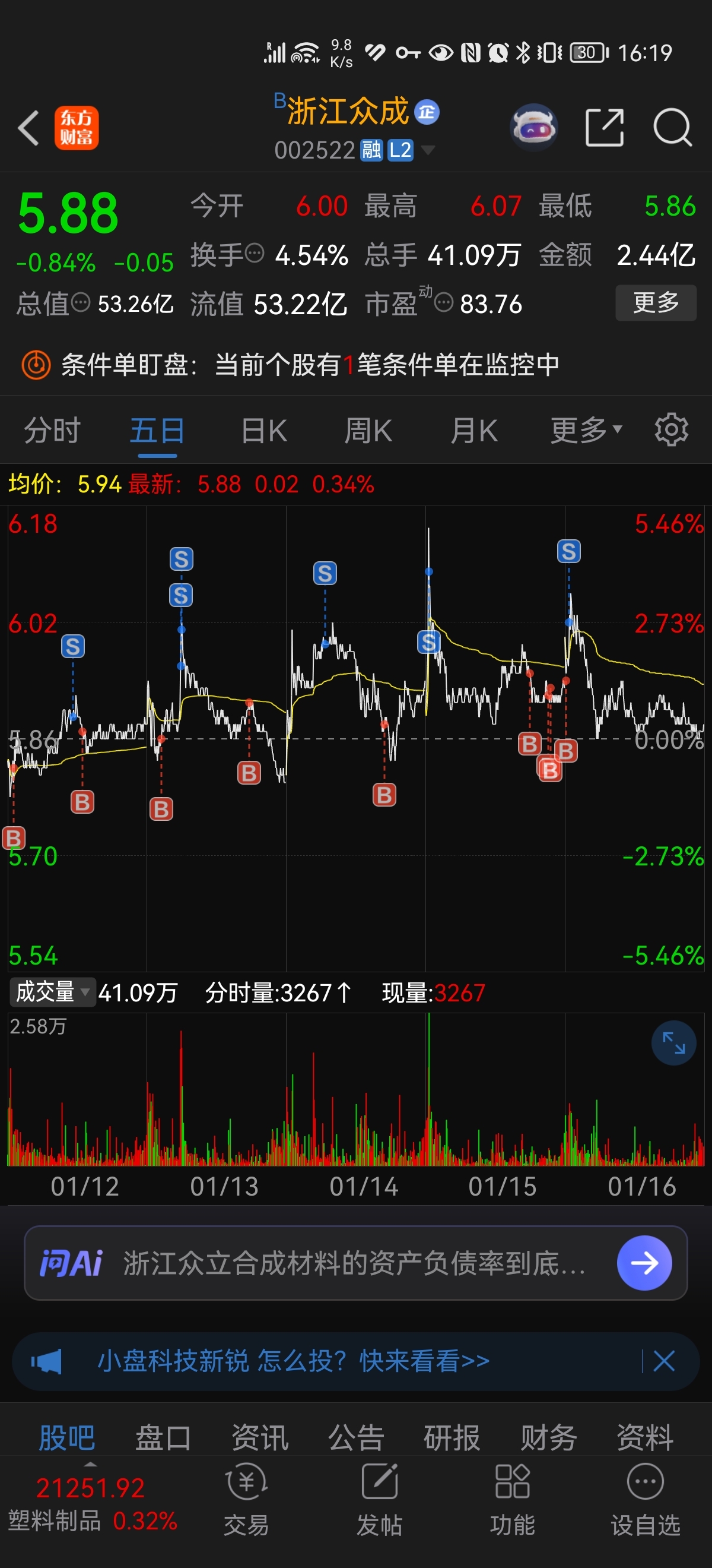 $浙江众成(SZ002522)$ 好股,5.9以内买入,6.02闭眼设置卖出,每天T,爽歪歪