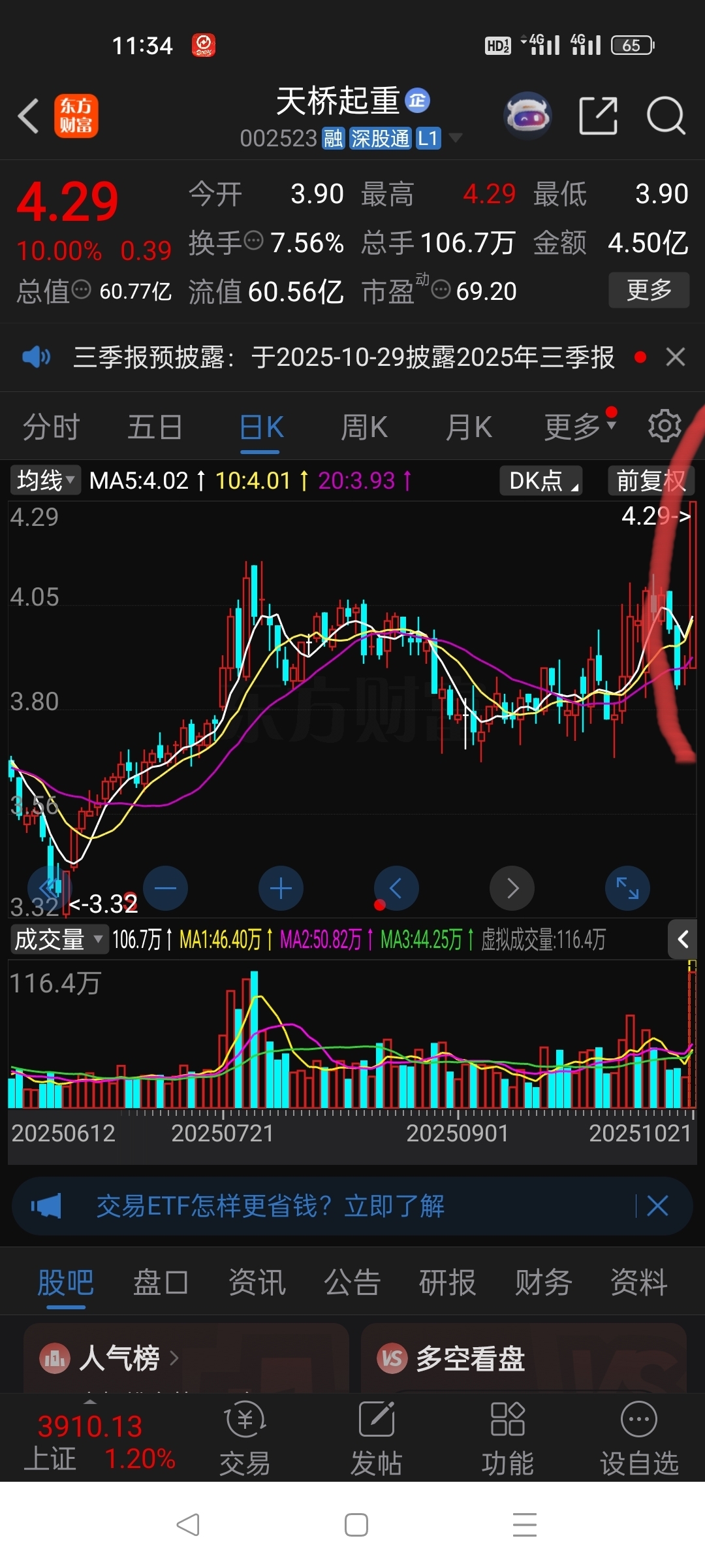 $天桥起重(SZ002523)$ 请问上面这条线长么是出货吗?我不懂请指教谢谢!