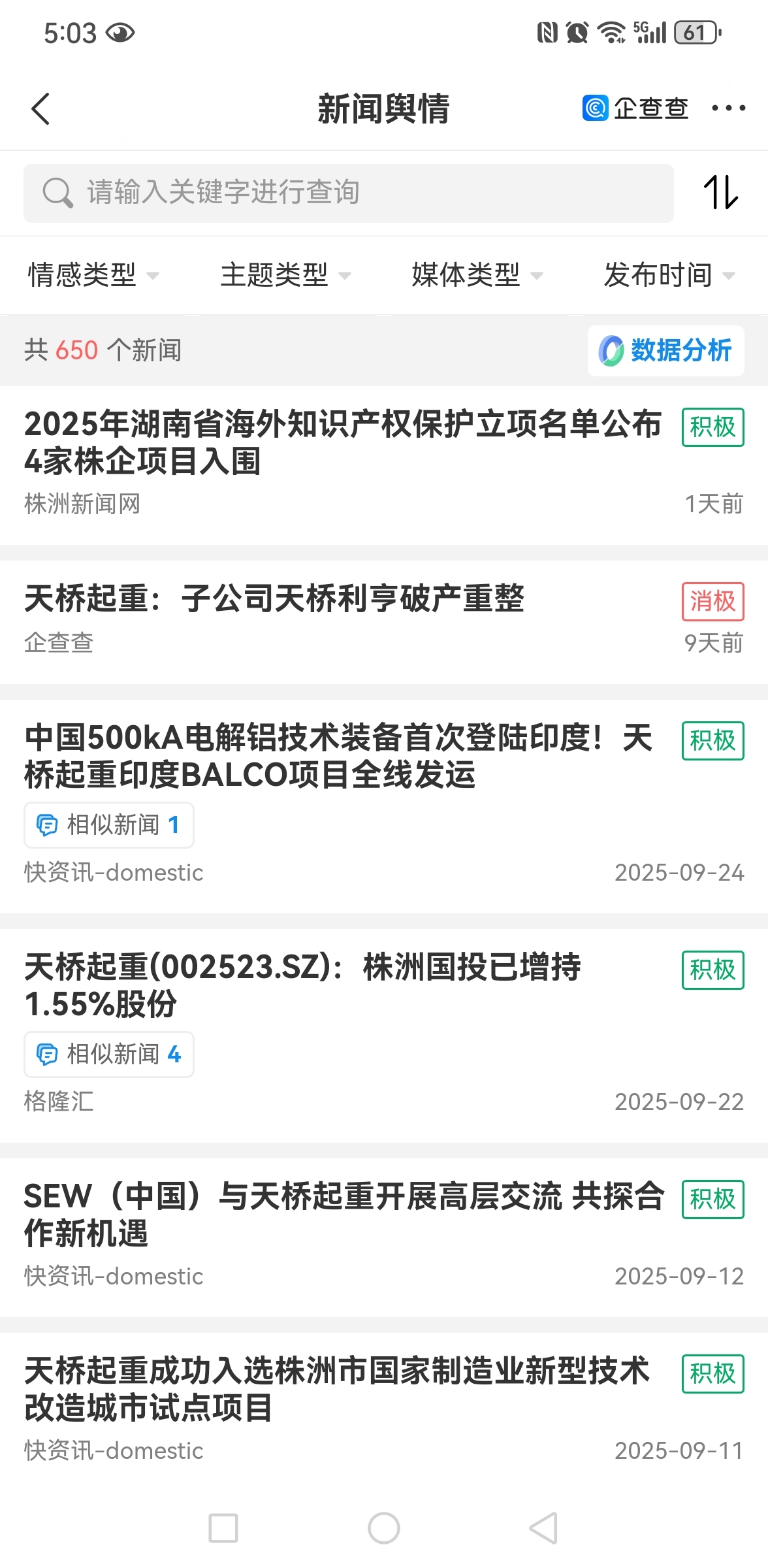 $天桥起重(SZ002523)$ 天桥起重近期新闻: