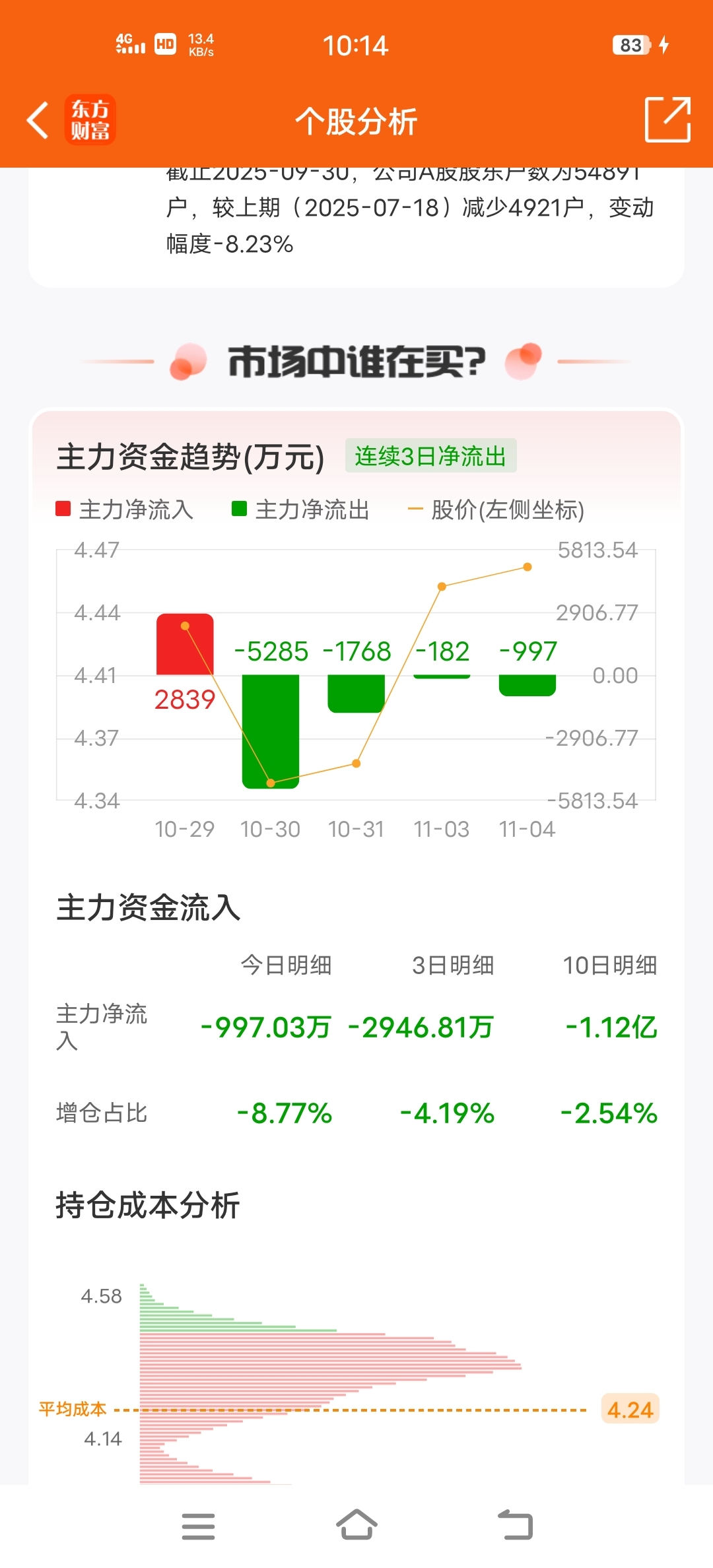 好好的多头,让主力给玩坏了,4.4以上出了10个亿了十天,不知道保护维护股价,就